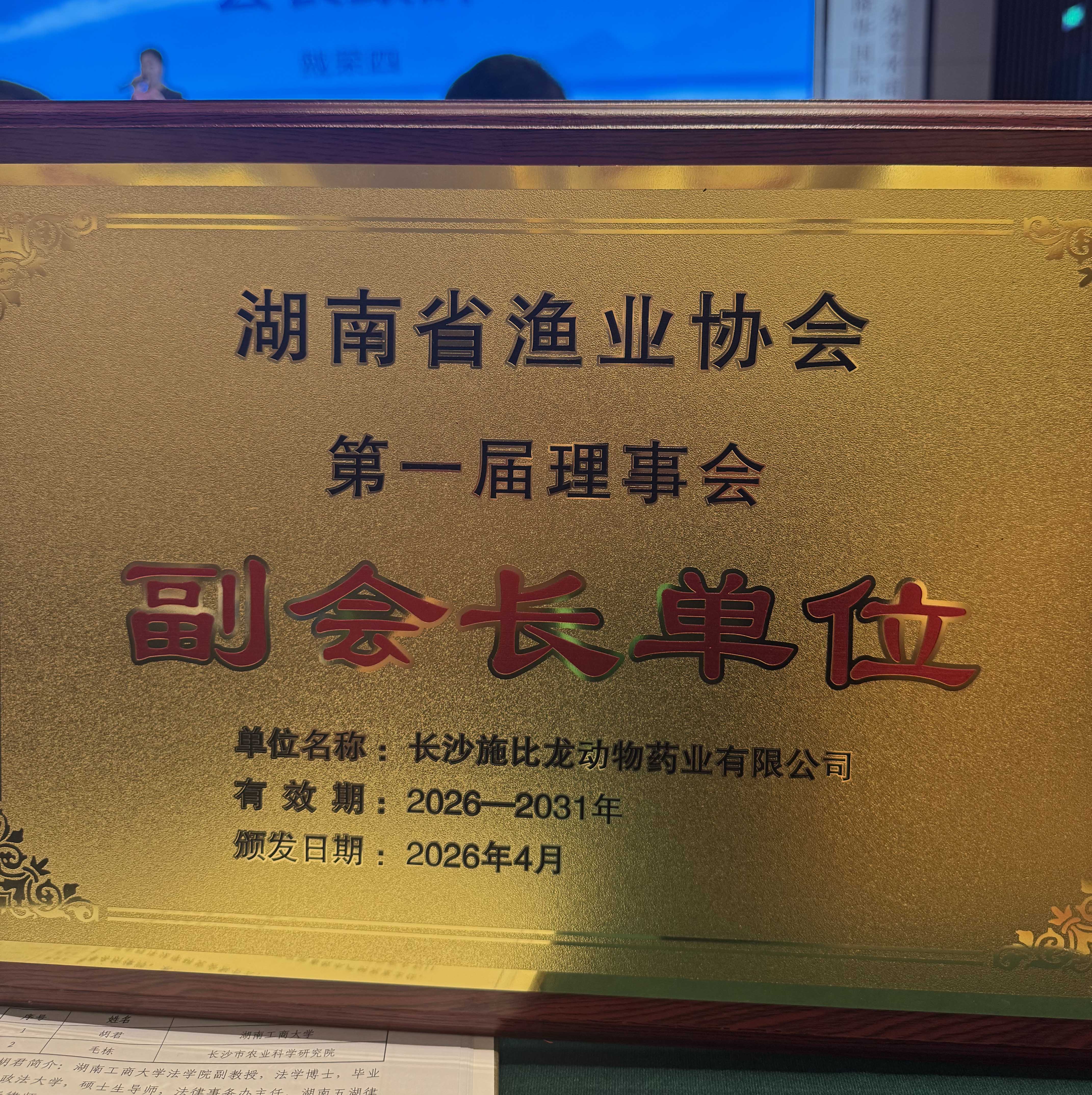 长沙施比龙总经理周勇波受邀出席,参与渔业协会第一次理事会会议,经过庄重的聘任仪式,光荣当选为第一届理事会副会长。