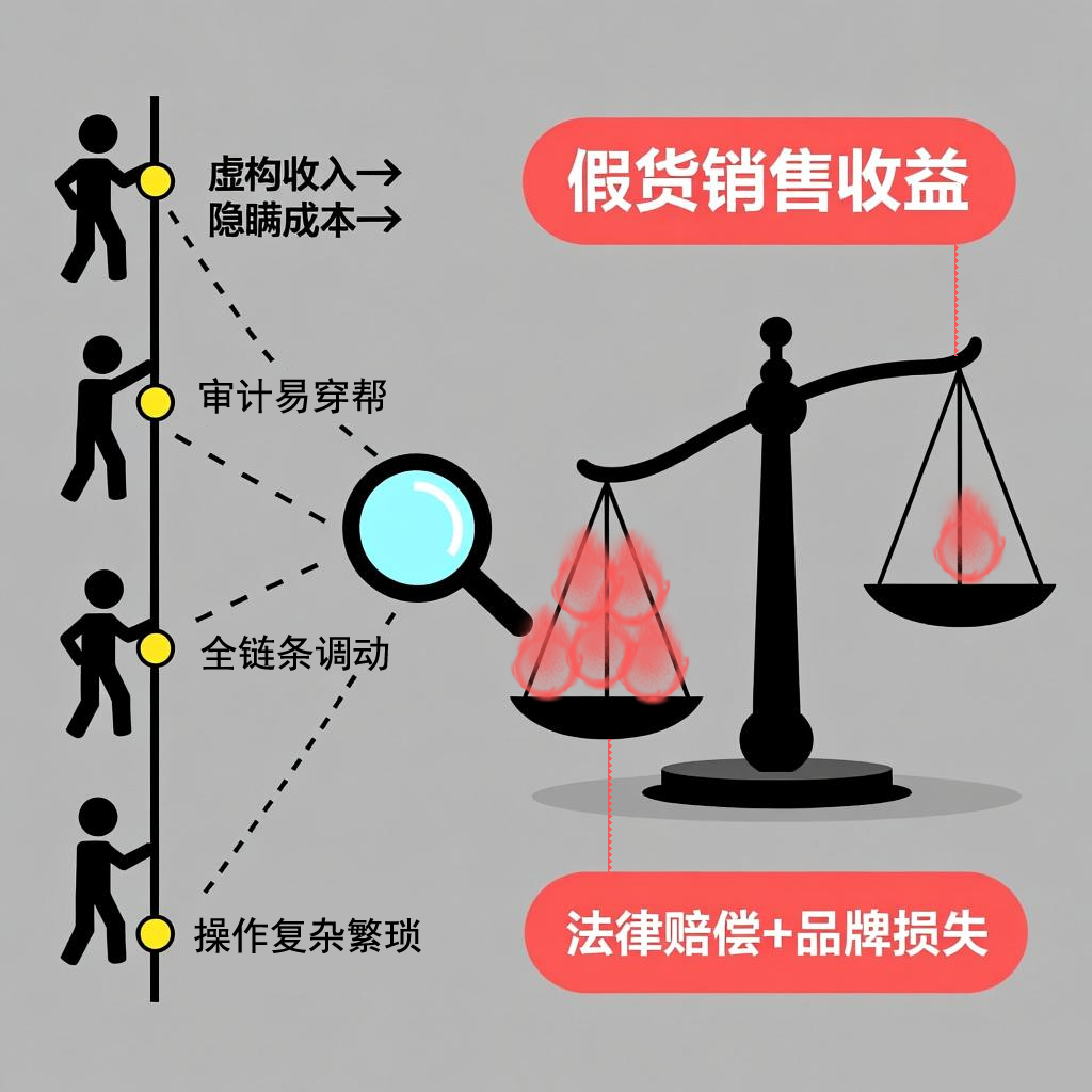 上市公司造假需协调全链条,如虚构收入、隐瞒成本,操作复杂且易被审计发现。而假货销售的直接收益可能无法覆盖法律赔偿、品牌损失等长期成本。